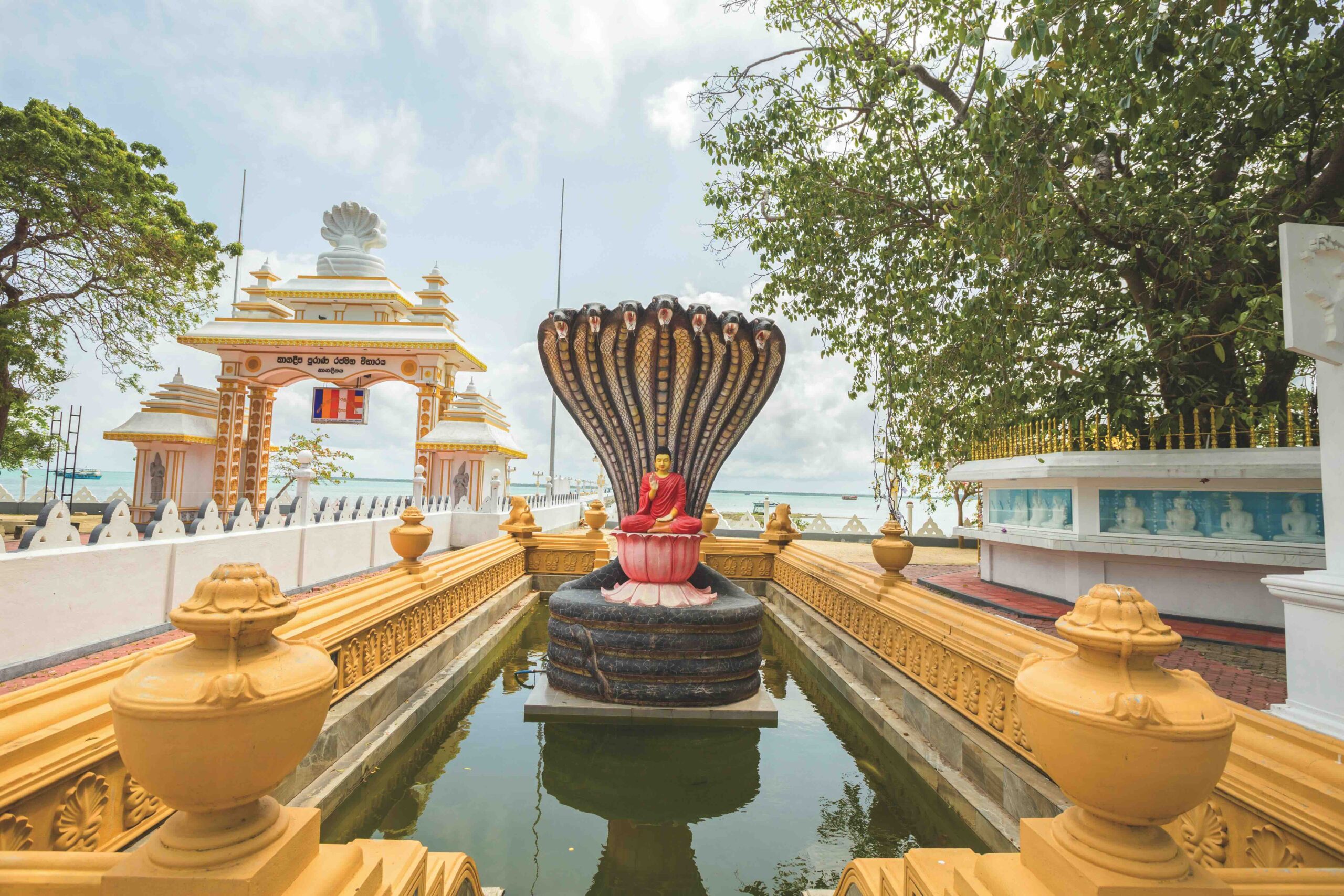 As evening descends, the lagoon mirrors the fading light. Oil lamps flicker in temples. The white dome of Nagadeepa glows softly under the moon. The ancient stupas of Kadurugoda rest in silence beneath the stars. Faith, in its many forms, wraps gently around the peninsula.