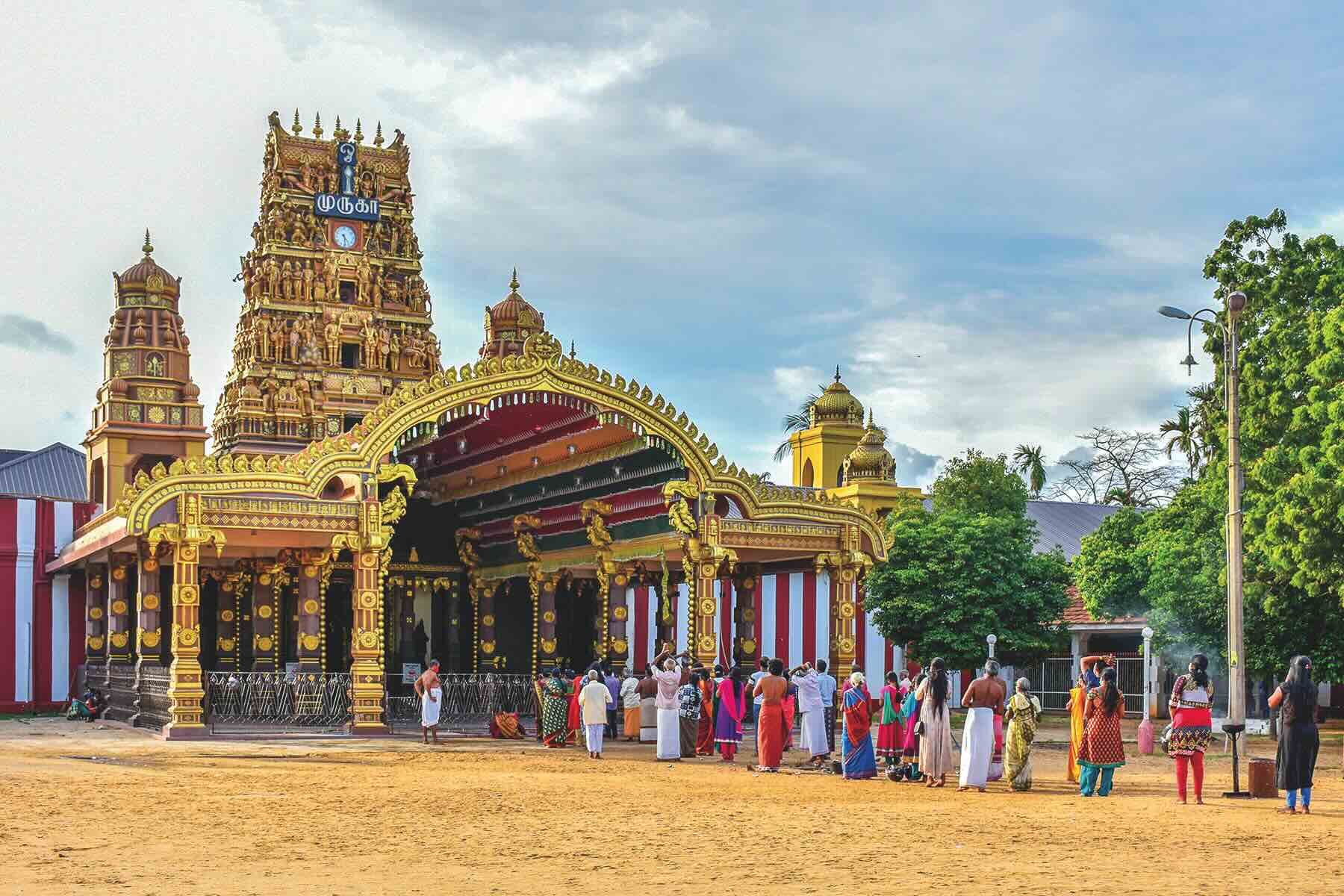 From there, the soul of the city reveals itself through faith. The golden tower of Nallur Kandaswamy Temple rises majestically above the streets, its intricate carvings glowing in the afternoon sun. Devotees walk barefoot across warm sand, carrying offerings of flowers and fruit. Temple bells echo through the air, mingling with chants and the faint scent of incense. This sacred space anchors the spiritual life of the Tamil community, drawing pilgrims from across the island and beyond. Yet Jaffna’s spiritual identity is layered and diverse.