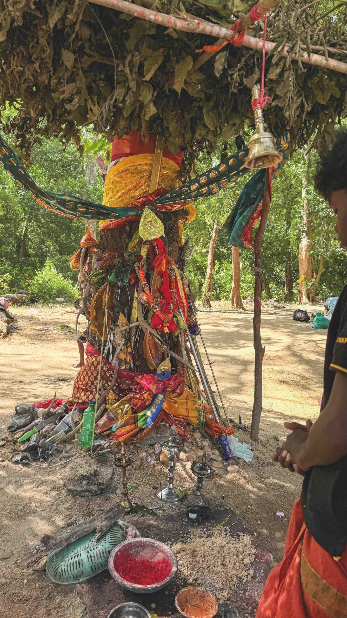 The Pada Yatra is believed to trace the path of this mythic pursuit and union. As we walked, the jungle itself reminded us of Murugan and Valli’s story. Passersby sang folk songs and shared tales of their divine love. One story that stayed with me was that of “Valli mullu,” a thorny plant that grows along parts of the route.