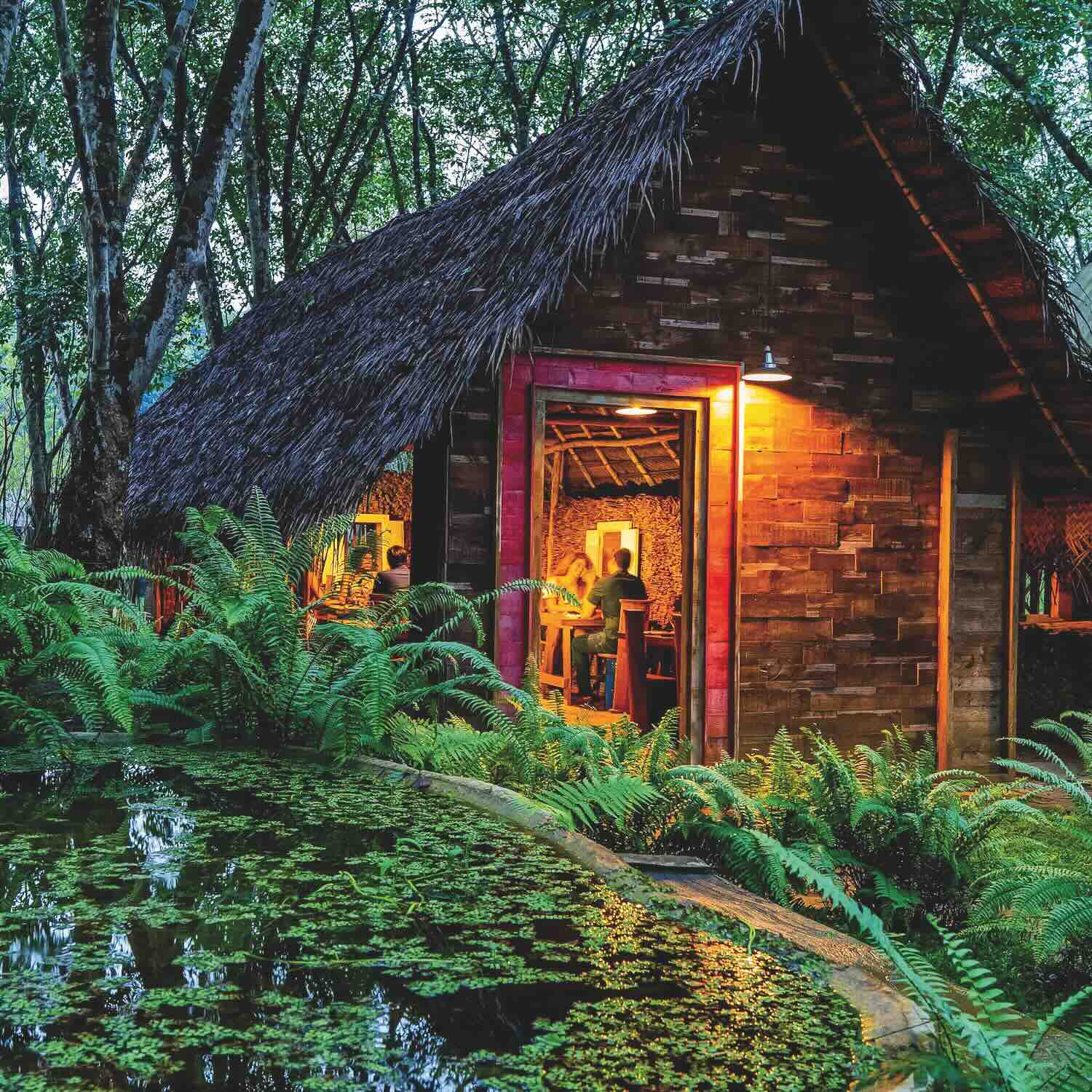 Wooden huts with thatched roofs serve as lounging areas, including a restaurant open from 11 to 11 and a swimming pool. The management sources supplies, laundry, and employment within nearby villages to reduce energy costs and support local livelihoods, keeping operations within a defined radius. Adhering to sustainability commitments—the core philosophy—management innovates in response to external changes. The energy crisis highlighted the need for less energy-intensive options.